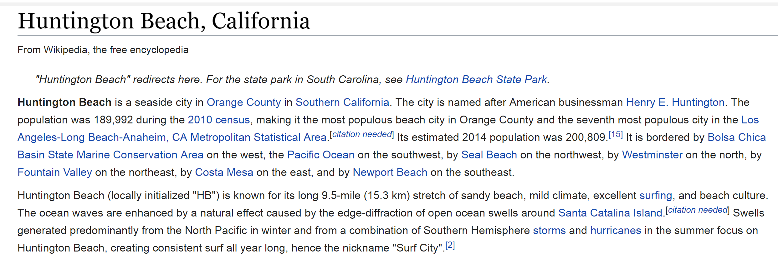 Huntington Beach, California – From Wikipedia, the free encyclopedia.